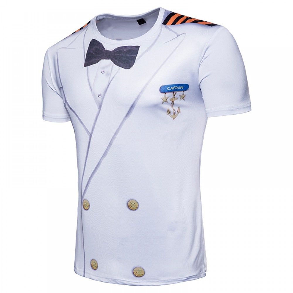 Men's 3D Short-Sleeved T-Shirt Fake Two-Piece Sailor Suit Printing Suit Printing